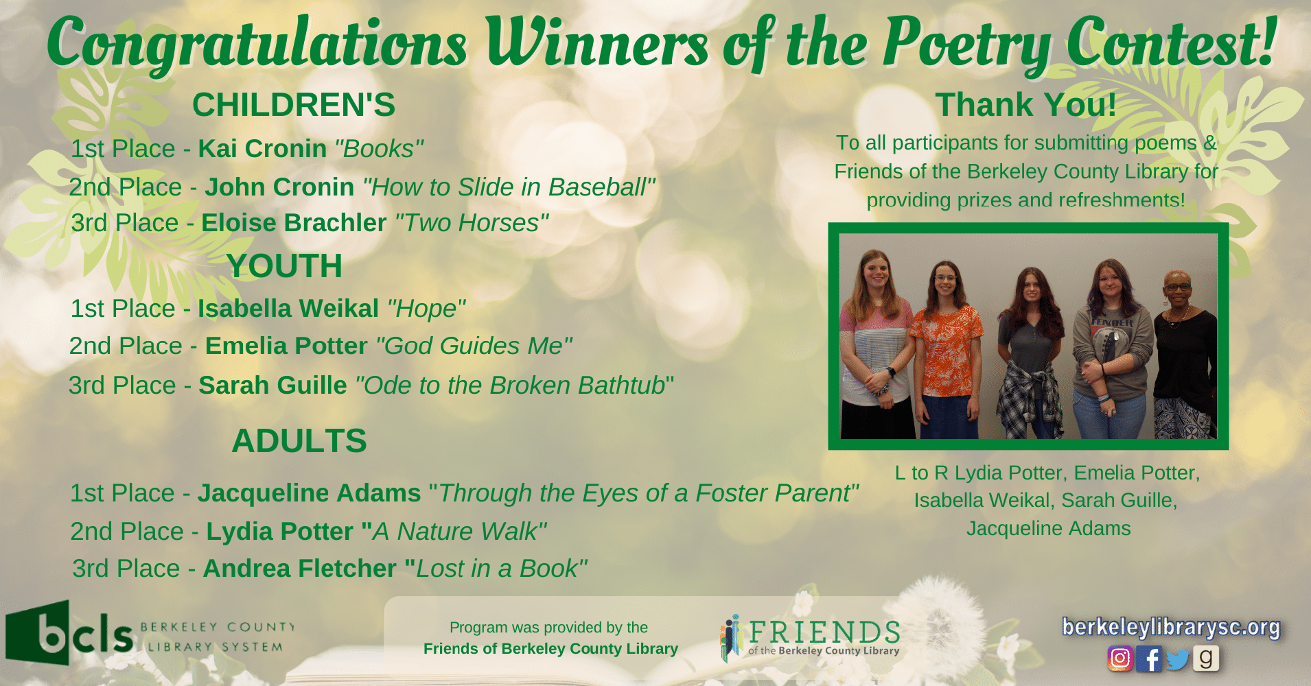 BCLS Announces Poetry Contest Winners