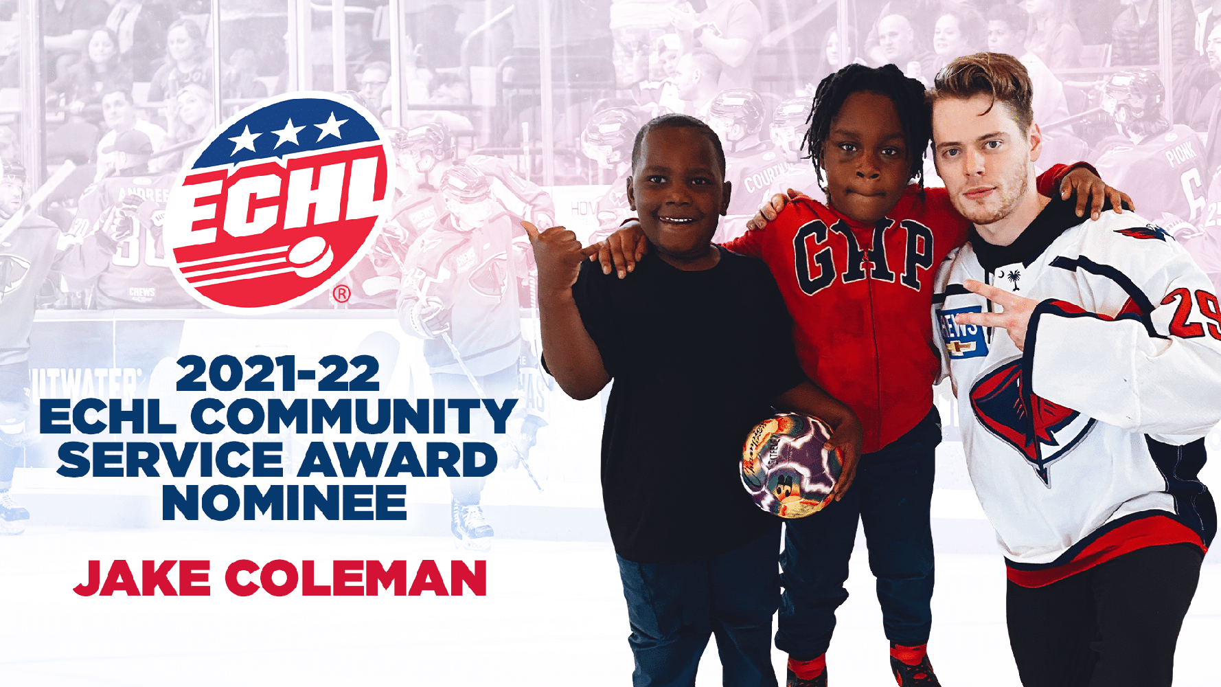 The South Carolina Stingrays are proud to announce Jake Coleman as a finalist for the 2021-22 ECHL’s Community Service Award.