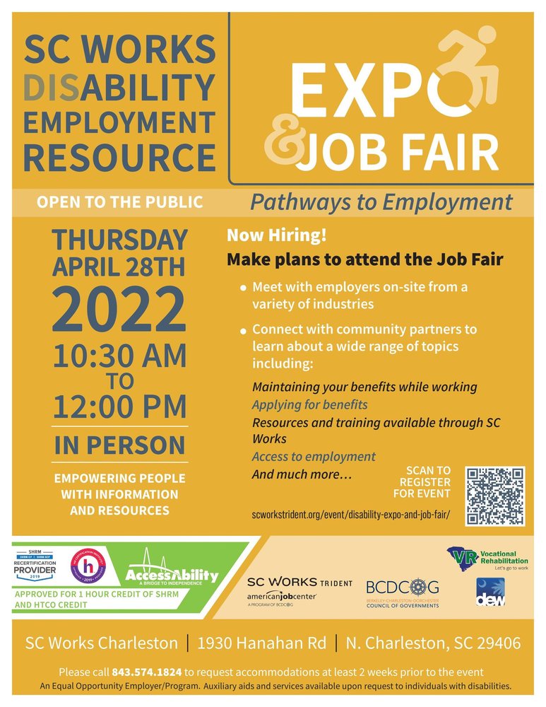 In addition to regional employers, several community resource organizations, including SC Vocational Rehabilitation, AccessAbility, SC Commission For The Blind and SC Department of Social Services, will be on-hand to provide important information and assistance to attendees.