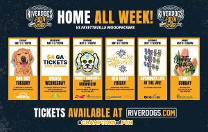 Two straight weeks on the road has given the Charleston RiverDogs plenty of time to gear up for the first homestand in a jam-packed May. The RiverDogs host the Fayetteville Woodpeckers in the first of three week-long home series this month.