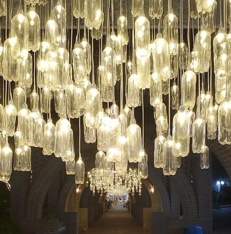 - Cascades – 800 upcycled “chandeliers” of cascading light in the Welcome Plaza portico.