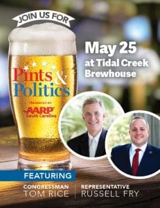 The Post & Courier will welcome Congressman Tom Rice and SC Representative Russell Fry for an upcoming edition of their “Pints & Politics” series. The happy hour event will take place at Tidal Creek Beer Garden (3421 Knoles Street) in Myrtle Beach on Wednesday, May 25th at 5:30 pm.