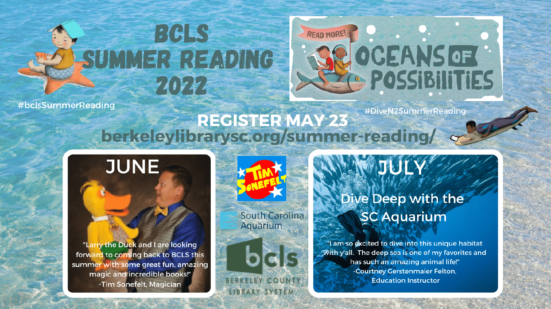 For more information on Summer Reading 2022: Oceans of Possibilities, please contact Sharon Fashion at 843-719-4223 or sharon.fashion@berkeleycountysc.gov.