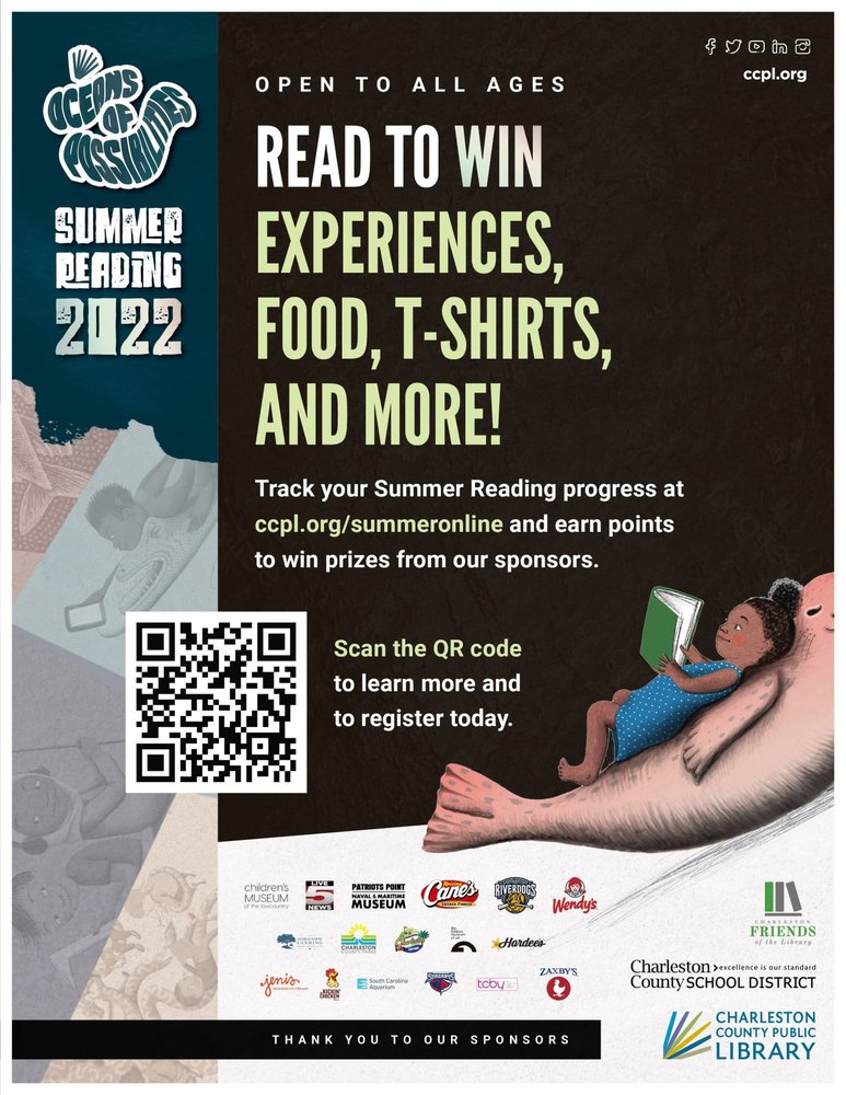 “Summer Reading is a great opportunity for patrons of all ages to expand their literary knowledge and win some great prizes,” said CCPL Executive Director Angela Craig. “CCPL has always been a partner in educational success, and Summer Reading helps fight the summer slide and promote literacy throughout Charleston County.”