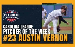 Vernon Named Carolina League Pitcher of the Week