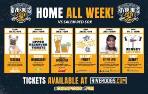 Below is a list of all of the fun the RiverDogs have planned for this week Tuesday-Sunday:
