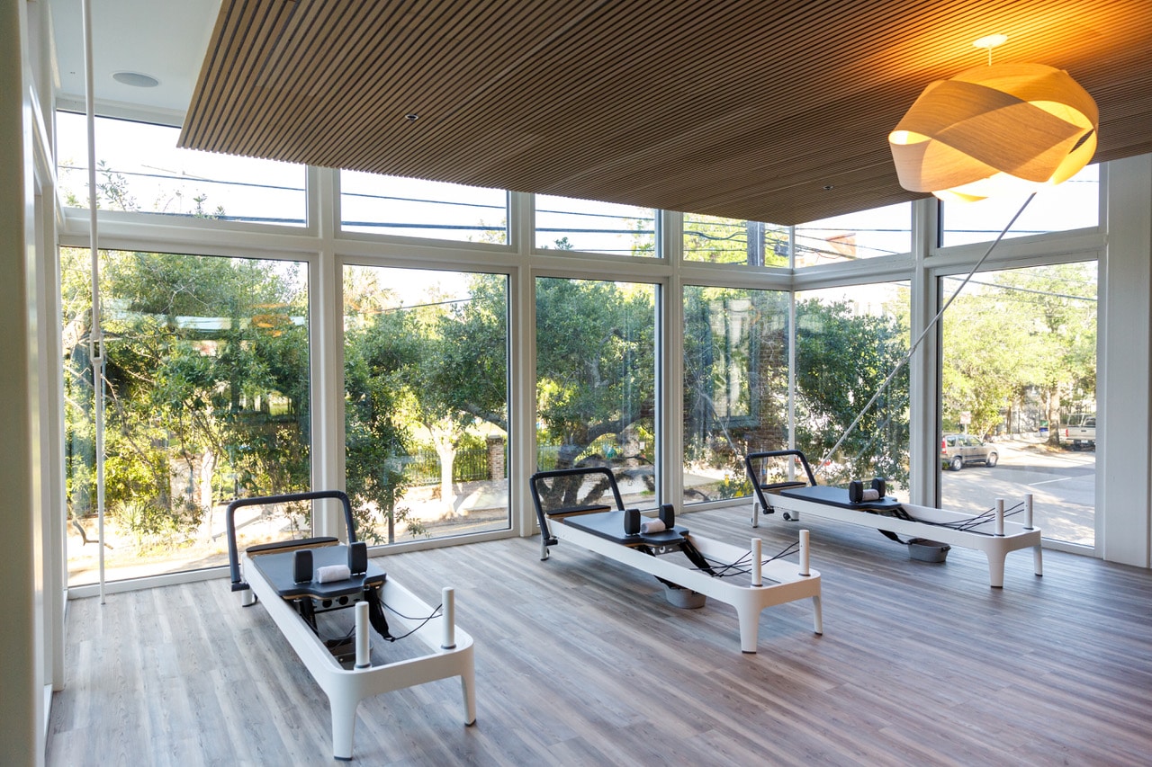 The new interiors are consistent with the same neutral hues, wood elements, and calming aesthetics found throughout the building, with very special touches including custom carpentry by Jennie’s brother, Eric Brooks, of Brooks Custom Woodworks, located on Sullivan’s Island. Also included in the family affair are Jennie’s mother, Benita, who manages Member Services and the new retail boutique located on the ground level, as well as Jennie’s stepfather, Bobby, who leads the TRX and personal training program.