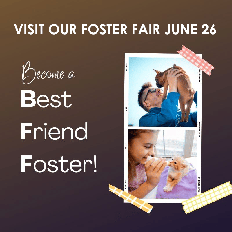The Foster Fair coincides with the National Foster Program sponsored by Petco Love to cap off National Foster Month in June. According to Petco Love, if just 2% of pet-owning households would foster, we could end preventable euthanasia in U.S. shelters.