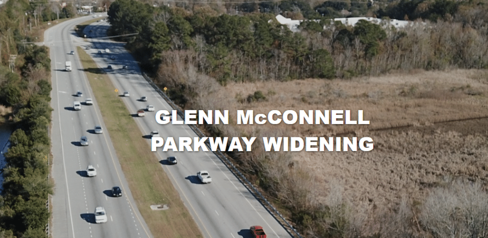 The Glenn McConnell Parkway Widening Project includes improvements along an approximately 2.1-mile section of Glenn McConnell Parkway starting near Magwood Drive to the intersection with Bees Ferry Road. The primary goal is to relieve traffic congestion on Glenn McConnell Parkway and improve bike and pedestrian access throughout the project corridor. For more information, please call Charleston County Public Works at 843-202-7600 or email roads@charlestoncounty.org
