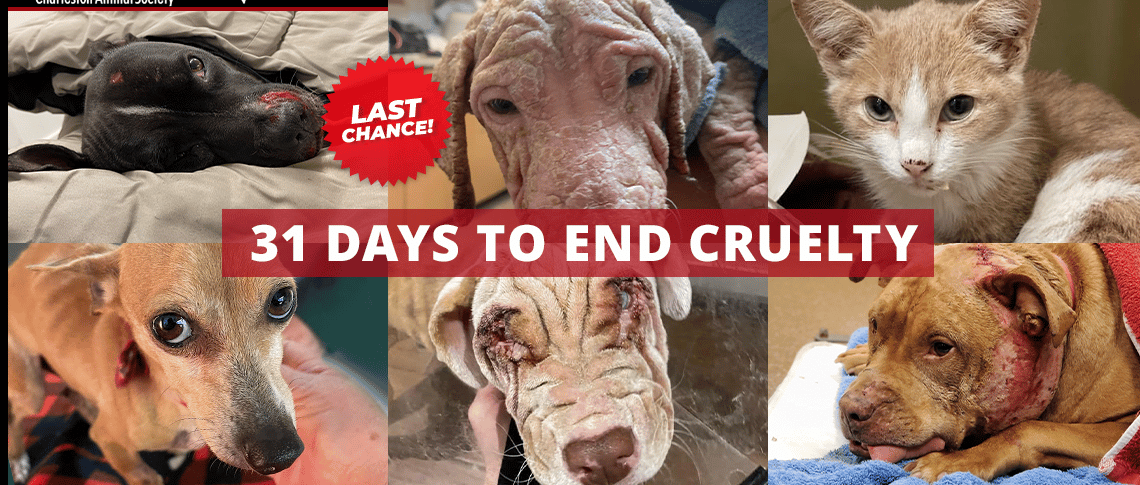 Cruelty has spiraled out of control to the point Charleston Animal Society is dedicating the entire month of July to the cause. You can join the “31 Days to End Cruelty” campaign and double your donation.