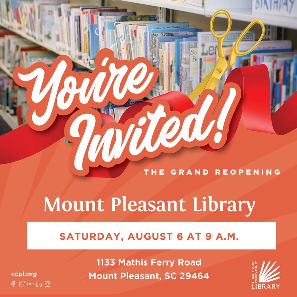 “We are excited to have our Mount Pleasant location opening to our beloved patrons,” said CCPL Executive Director Angela Craig. “The renovation brings innovations to the community while maintaining our core library services. Welcome back to the library!”