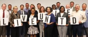 New board and committee members, pictured above from left to right: Fleetwood Hassell, Matt Roberts, President & CEO Chloe Knight Tonney, Ben Nesvold, Steve Ervin, Cassandra Price, Wendy Kopp, Lisa Van Bergen, Christopher Glenn, Courtney Howard, B. Shawan Gillians, David Burt, Natasha Chatman, Bob Lowe, Parker Lee, Brad Davis and Andrew Porio. Newly elected board members not pictured: Monifa Ellington and Anne Forest.