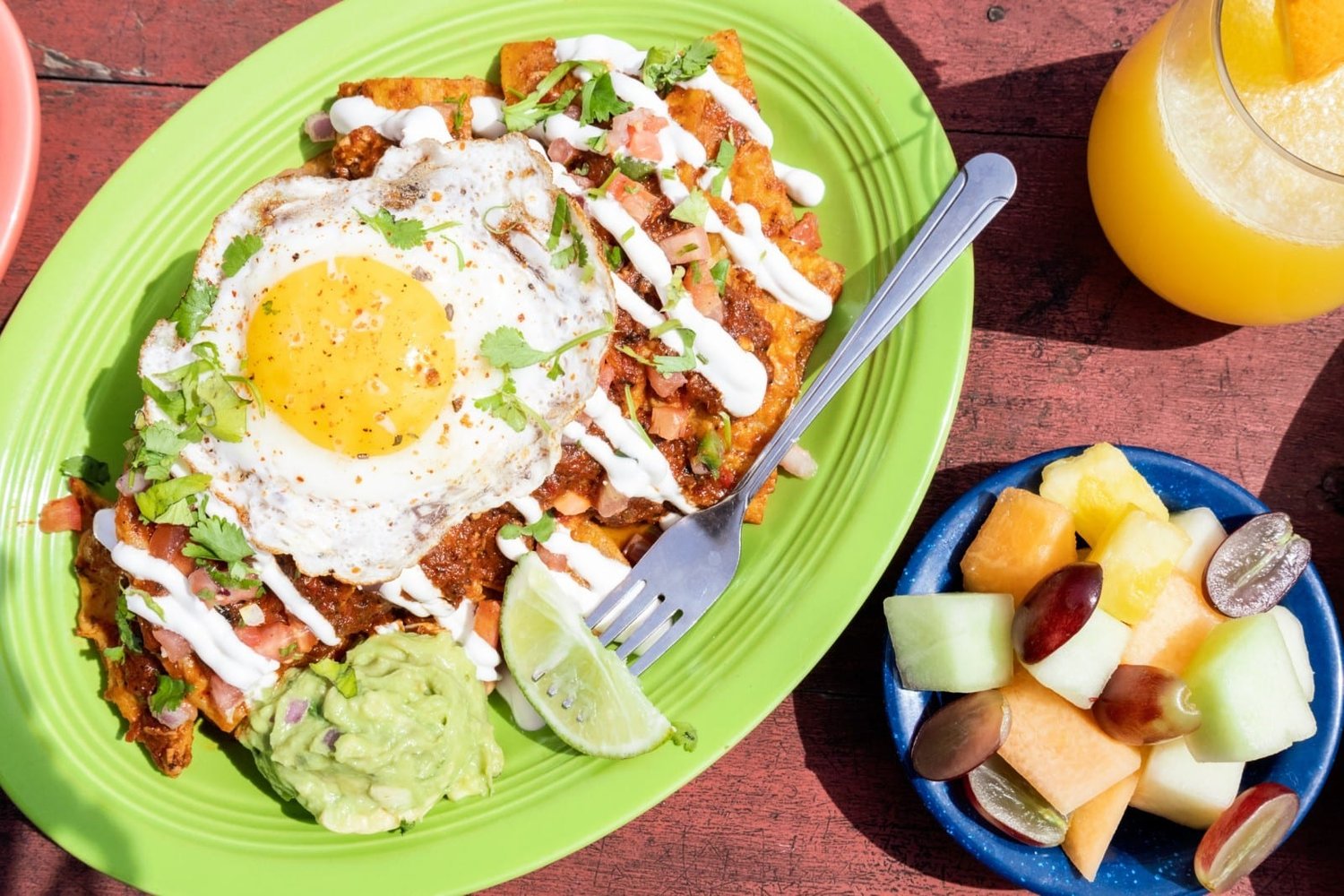 - Chilaquiles (pictured) with tinga chicken, egg, and ranchero sauce