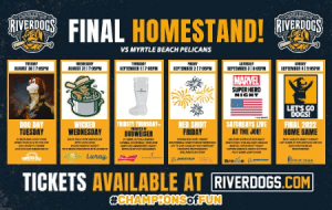 Below is a list of all of the fun the RiverDogs have planned for the series running Tuesday-Sunday: