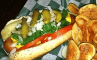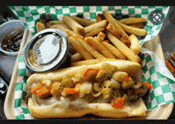 Not to be outdone Garret’s Chicago Style Italian Beef Sandwich pays homage to the Philly Cheese Steak with a French twist. Sauteed thinly sliced Vienna Italian beef presented on a soft hoagie and topped with giardiniera (an Italian relish of pickled vegetables in vinegar or oil). To top it off it comes with a side of Au Jus (roasting juice) for dipping. Succulent to the max. Ooh la-la!