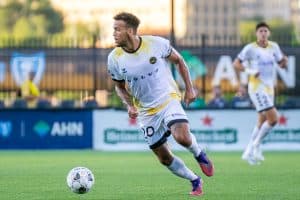 It wouldn’t be until past the half-hour mark that another opportunity to score presented itself. Sims sent in an inviting cross into the box, but it failed to be received by a teammate. The Battery nearly broke the game open in the 39th minute when a defensive error allowed Andrew Booth to take a shot on goal without goalkeeper Jahmali Waite on his line. Booth’s shot was deflected initially and then tipped over the crossbar with a header by Arturo Ordóñez, a big chance missed.
