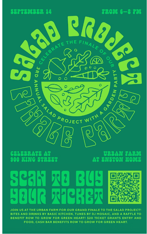 The garden party will include bites and beverages from Basic Kitchen, tunes by DJ Mosaic, and a raffle to benefiting the Row to Grow Campaign for Green Heart.