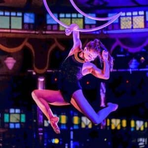 Cracked Nuts!, is the Spiegeltent’s anchoring show, hosted by Las Vegas legends Matt and Heidi Morgan of the critically acclaimed Las Vegas show Absinthe, hailed as “#1 greatest show in Las Vegas history” by Las Vegas Weekly. The family-friendly Nutcracker-inspired performance is billed by the company as “a joyous ride full of acrobatics, circus, laughs and classical theater.” With a sharp focus on artistic direction, dynamic music, audience interaction, and exquisite Spiegeltent interiors, Stinky Monkey performances utilize elements of circus, vaudeville, and performance art to create unique, vibrant, heart-stopping theatrical experiences.