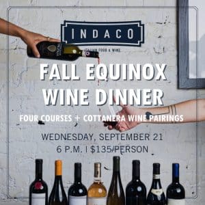 Indaco to Host Fall Equinox Wine Dinner on September 21st