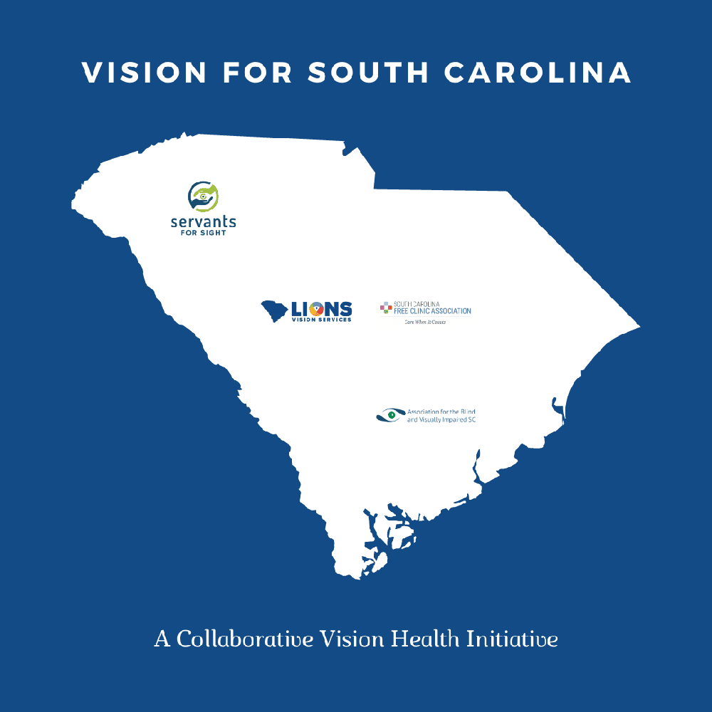 Columbia, SC – A vision for expanded eyecare and innovative partnerships in South Carolina is coming into focus thanks to a 3-year grant from the BlueCross® BlueShield® of South Carolina Foundation (“the Foundation”) for the Vision for South Carolina Program. This program is a joint venture by Lions Vision Services (LVS), the Association for the Blind and Visually Impaired SC (ABVI), Servants for Sight (SFS), and the South Carolina Free Clinic Association (SCFCA). Together these nonprofits are increasing South Carolina’s capacity for vision health and combating the rise of vision loss, which is expected to double by 2030 without effective and immediate intervention.