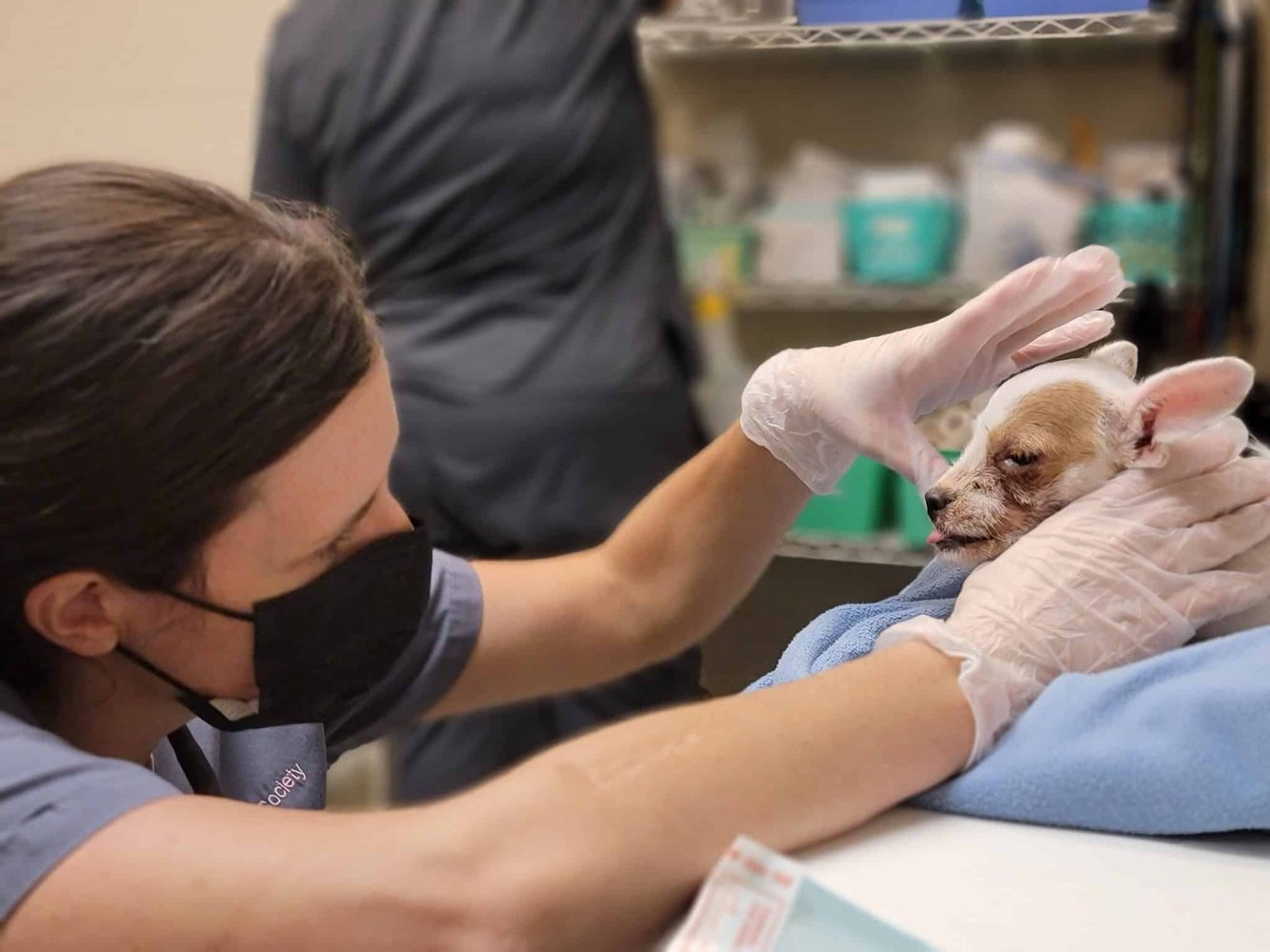 Along with a fracture to her right jaw and her left eye socket, Billie also had a puncture wound. The chihuahua did not like her feeding tube and pulled it out, however, she is now eating soft food and sleeping comfortably under the close eye of shelter staff and veterinarians.