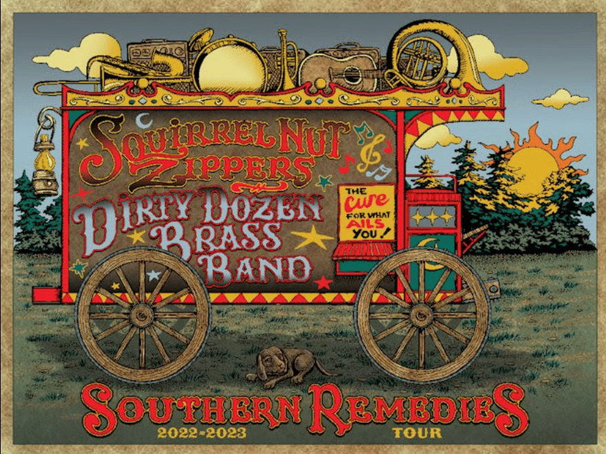 Squirrel Nut Zippers & The Dirty Dozen Brass Band reunite for The Southern Remedies Tour 2022/2023. New Orleans’ most celebrated modern brass band, The Dirty Dozen Brass Band, pairs up with the Squirrel Nut Zippers and their multi-platinum blend of 1930’s era jazz, swing, and folk. For these two groups, breaking molds and charting a new musical course is what helped each attain the highest level of success. The performances by these two critically acclaimed bands make for a delightfully eclectic and entertaining evening, with two sets plus collaboration.