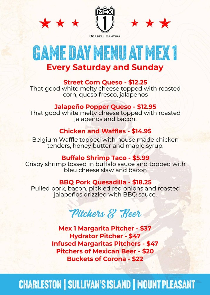 Each of the three Mex 1 locations will be rolling out the Game Day menu this upcoming weekend. For more information, visit https://mex1coastalcantina.com.