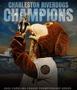 Lynchburg, VA- The Charleston RiverDogs claimed their second consecutive league championship courtesy of a 6-2 win over the Lynchburg Hillcats at Bank of the James Stadium on Tuesday night. Carson Williams and Brock Jones homered and JJ Goss tossed a career-high 6.2 innings in the victory. The RiverDogs finished the postseason with a 4-0 record.