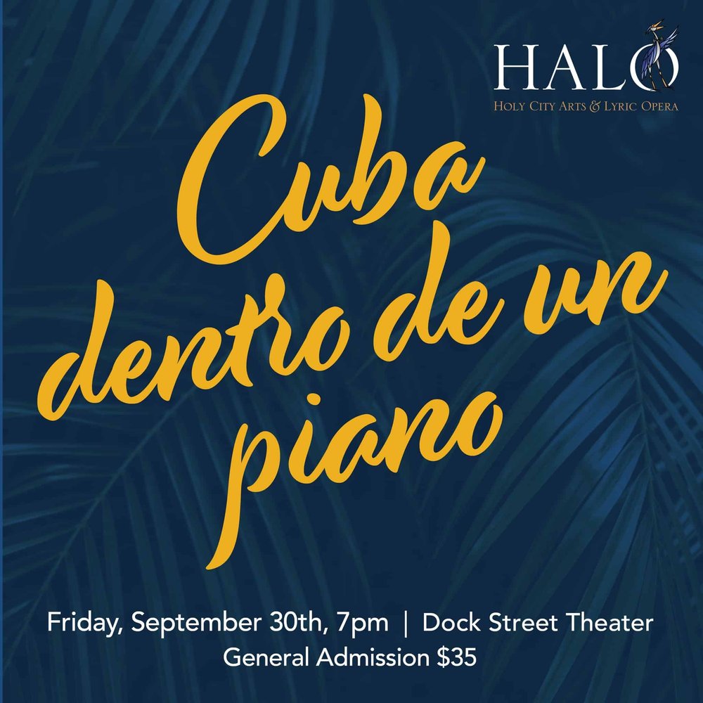 Holy City Arts & Lyric Opera (HALO) continues its inaugural season with Cuba dentro de un piano featuring Cuban-American soprano Elaine Alvarez in a recital of classical and popular music of Hispanic origin. The show will also include Rolando Salazar on piano and special guests, The Gino Castillo Quartet.