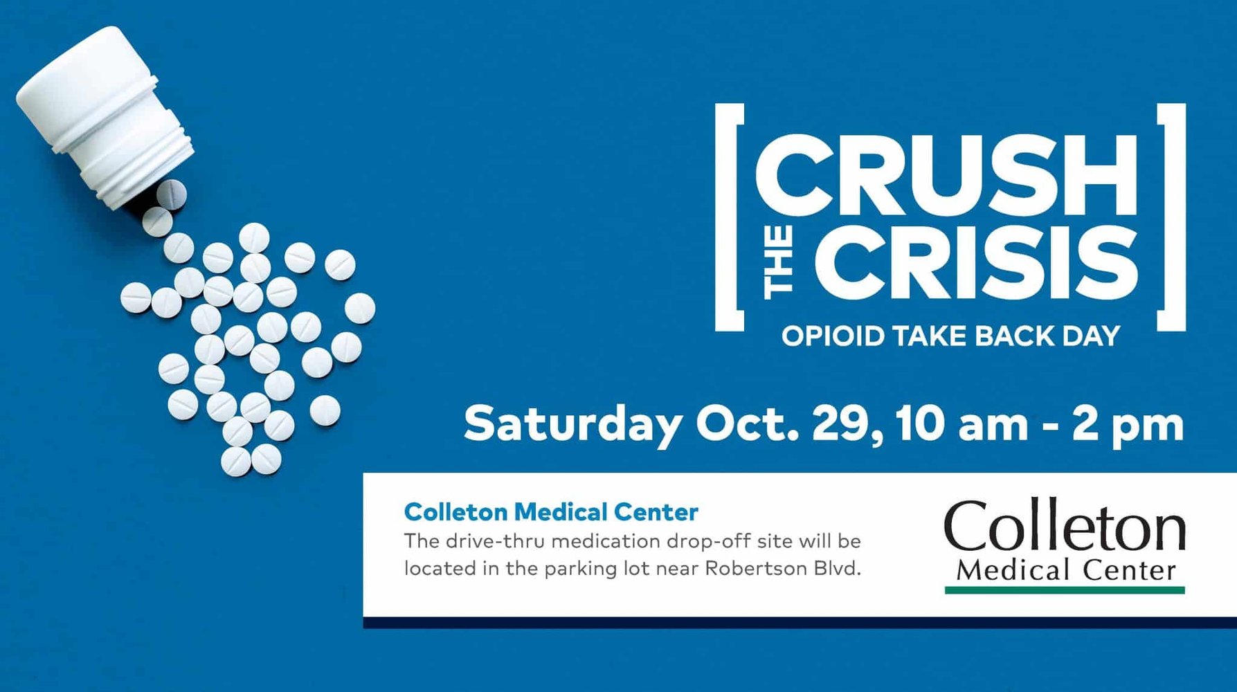 Colleton Medical Center’s Crush the Crisis event will align with National Prescription Drug Take Back Day, sponsored by The United States Drug Enforcement Administration (DEA).