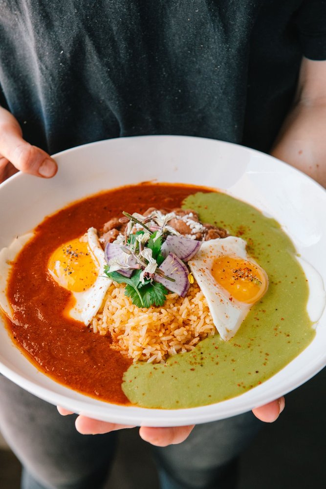 Owner/Chef Brooke Warden’s brunch menu, available Saturdays from 11 am to 3 pm, includes colorful specialties like Huevos Divorciados (right) complete with beans, rice, tortillas, arbol rojo, and salsa verde; Torta con Huevos made for all the breakfast sandwich lovers out there; and the Pancakes with Flor de Jamaica compote. Pink Cactus will also be serving hot and iced Springbok coffee during brunch.