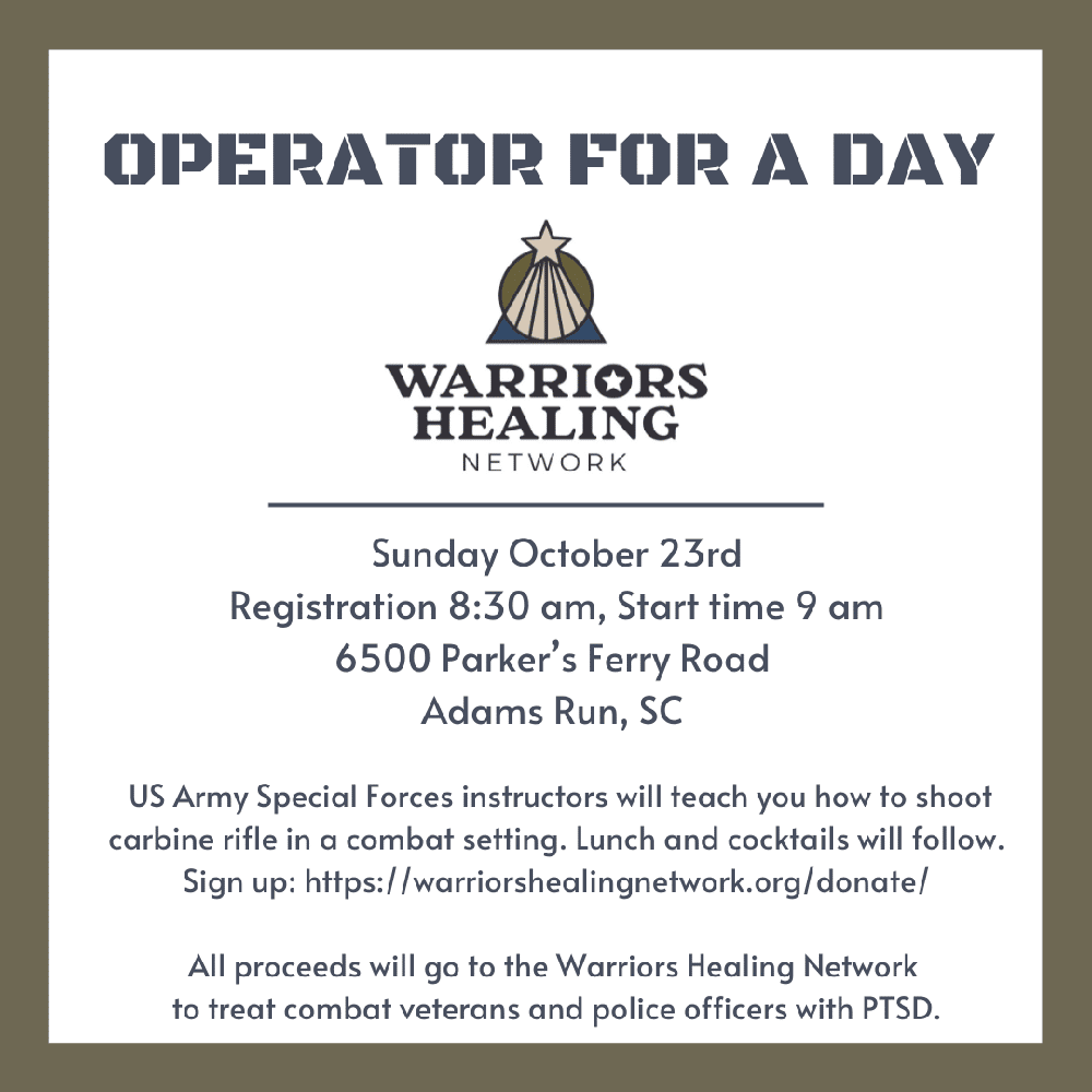 On Sunday, October 23rd, you could be an Operator For A Day for a good cause. US Army Forces instructors will teach you how to shoot carbine rifle in a combat setting.