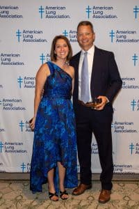 Two years ago, Holloway began experiencing abdominal pain that wouldn’t go away. Doctors assumed it was either muscular or a gastrointestinal concern. None of the initial tests showed anything wrong, so they did a CT scan, which revealed a spot on her lung. She went to see a pulmonologist, but since Holloway is young, healthy and had no risk factors for lung cancer, they said it was likely nothing to worry about. After a biopsy, she got the news. It was stage I lung cancer.