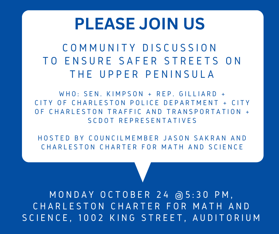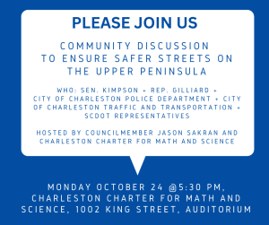 Charleston City Councilman to Host Community Discussion About Pedestrian and Auto Safety on the Upper Peninsula