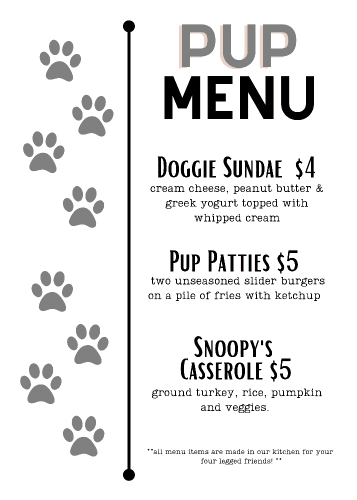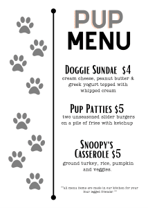Sierra Nevada Brewing Company will have pup treats and giveaways along with some fun D&D swag. Along with the giveaways, Dog and Duck has crafted a special “PUP MENU” just for the pooches which includes menu items specifically for your dog (see below).