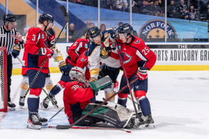 That was the closest Norfolk would get in the contest as the Stingrays scored two additional goals before the final horn sounded. Michael Kim skated down the half wall, escaping the Admirals’ defense before flipping a pass to Tarek Baker in the slot. From a knee, Baker pushed the puck past Morris for his first professional goal.