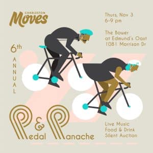 Charleston Moves’ 6th annual Pedal & Panache, presented by Bike Law and Morrison Yard Residences, is next week on Thursday, November 3! The celebration will feature live music by The Real Good News, outstanding food by Edmund’s Oast, wines by Graft Wine Shop and beers by Frothy Beard Brewing, and a silent auction, all hosted in the beautiful Bower at Edmund’s Oast. Tickets include food and drinks for the evening, and can be purchased at charlestonmoves.org/pedal-panache. For auction bidding (through November 3rd at 9 pm), visit auctions.networkforgood.com/go/pedalpanache.