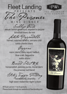 Fleet Landing Hosting Special Night with Prisoner Wine Company