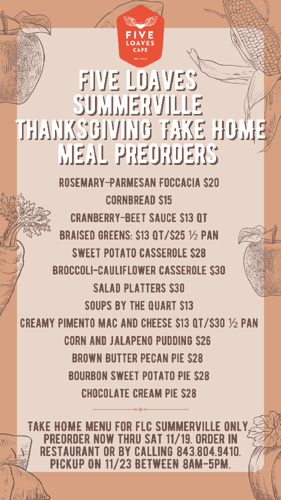 Is Thanksgiving just too stressful for you? Would you rather leave the cooking to someone else? If you answered yes to either of those questions, you’ll be relieved to hear that many Holy City businesses are here to help this holiday season!