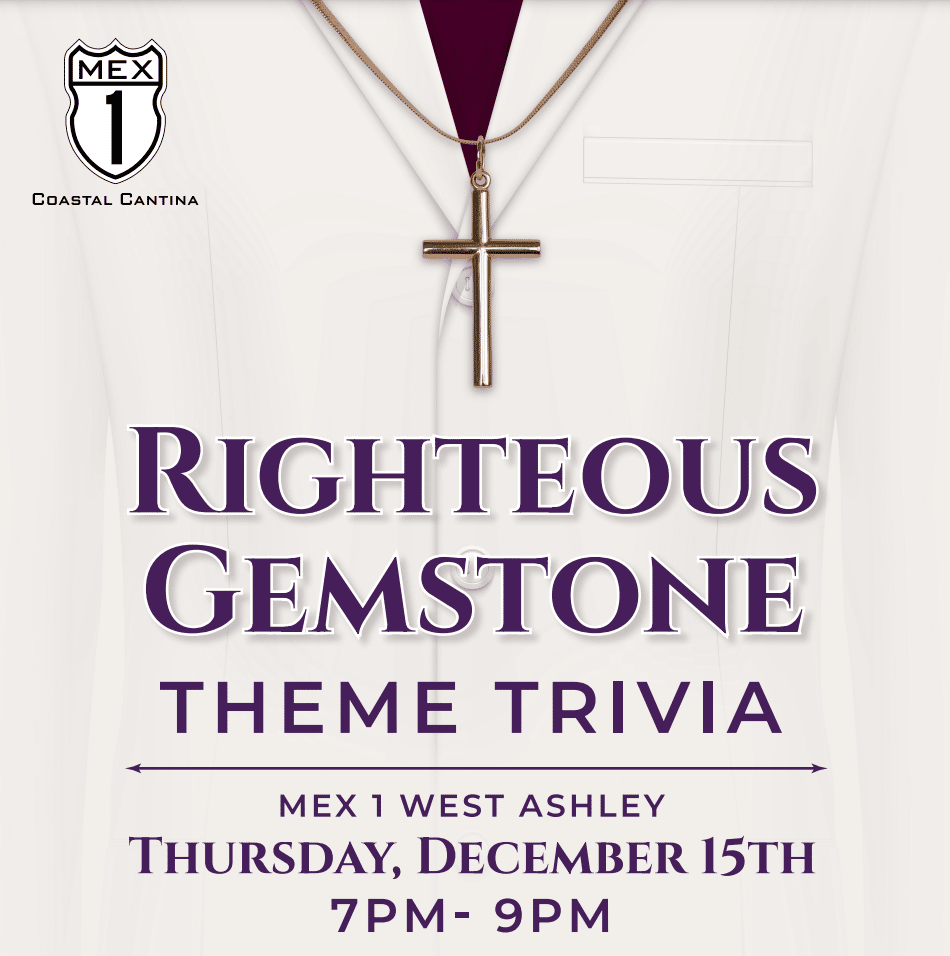 Events Mex 1 Coastal Cantina Hosting a “Righteous Gemstones” Trivia Night Published 3 years ago on December 5, 2022 By Holy City Sinner On December 15th, Mex 1 Coastal Cantina will host a evening of trivia dedicated to HBO’s The Righteous Gemstones, which films in the Charleston area. Trivia night runs from 7 pm to 9 pm at Mex 1’s West Ashley location – 817 St. Andrews Blvd. Share on FacebookTweetFollow us Related Topics:Mex 1 Coastal CantinaThe Righteous Gemstonestriviawest ashley Up Next Firefly Distillery Releasing Special Barrel Proof Bourbon on December 13th Don't Miss Mount Pleasant Towne Centre Continues Holiday Celebration With Inaugural Merry & Bright Concert Follow Us Subscribe to HCS Subscribe to our mailing list Search PatreonAds HCS Sponsors Ads Events Weekend Preview2 years ago Charleston Weekend Events There’s ALWAYS something to do in Charleston – especially on the weekend. If you need help finding plans, just consult... Events2 years ago Explore Charleston & Children’s Museum of the Lowcountry Unveil The Charleston Santa Events2 years ago Waterfront Ice Skating Rink to Return to Charleston Harbor Resort & Marina Events2 years ago Miracle Holiday Pop-Up Bar Returns to Handcraft Kitchen & Cocktails This Month Events2 years ago Big Brothers Big Sisters hosts BIG Lowcountry Boil Events2 years ago Comedy Legend Katt Williams Returns to the North Charleston Coliseum in March Events2 years ago Parade, Vendor Applications Open for Upcoming ‘Holiday Magic’ Events Events2 years ago “Know Whatcha’ Know” Release Party & Fashion Show Set for Saturday Events2 years ago High Tide Music & Arts Festival Coming Back to Charleston for Third Year More Events