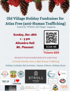Guests can expect all-inclusive choices of Homemade holiday custom cocktails by Brown-Forman, vintage wines by Charleston Wine Awhile, brews from Palmetto Brewing Co., s’mores on an open fire, kids games and activities from Beach Cowboy Fitness, pizza from Paisano’s Pizza Grill, holiday music, and more. There will also be several raffle giveaways (with the purchase of ticket), games, holiday decorations, and guest speakers. Plus, representatives from Atlas Free, Homeland Security, and several Mt. Pleasant community leaders will share how your involvement and donations can impact the lives of those subjected to human trafficking.