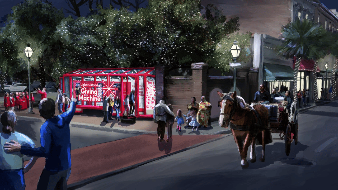 Since 2017, these Giving Machines have been placed in select cities throughout the world, raising more than $15.1 million dollars for charitable organizations. To support more local nonprofits, a Mobile Giving Machine was launched this year and will be traveling to five southern cities from Thanksgiving through Christmas: St. Augustine, Florida; Birmingham, Alabama; Atlanta, Georgia; Charlotte, North Carolina; and Charleston, South Carolina.