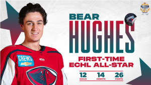“Bear has been nothing but a professional since he arrived in South Carolina,” said Head Coach Brenden Kotyk. “He came in, worked hard, and earned every second of ice time he has received. Hughes has a very bright future in professional hockey.”