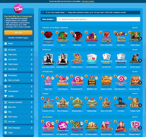 What are some of the most popular games available at HappyLuke, and what sets them apart from other online casinos?