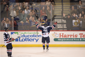 Following a review for goaltender interference, Florek doubled the Stingrays’ lead on his second power play marker of the game with 4:52 left in the second period. Florek crashed the net and pushed a rebound past Tendeck for the 2-0 lead.