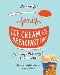 Jeni’s Shares Plans for “Ice Cream for Breakfast Day”