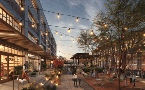 In addition to restoring Storehouse 8 and 9, the next phase of the redevelopment also includes the construction of a new restaurant space to be known as Storehouse 8.5 within the plaza between the buildings. The plaza will be a community gathering place and includes an outdoor dining space, an event lawn, and game area.