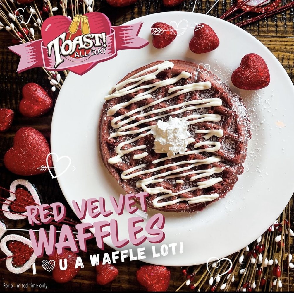 Toast! All Day, the all-day brunch restaurant with locations in Charleston, Mount Pleasant, Summerville, and West Ashley, is offering diners the option to start their Valentine’s Day with their new Red Velvet Waffle, available for a limited time only.