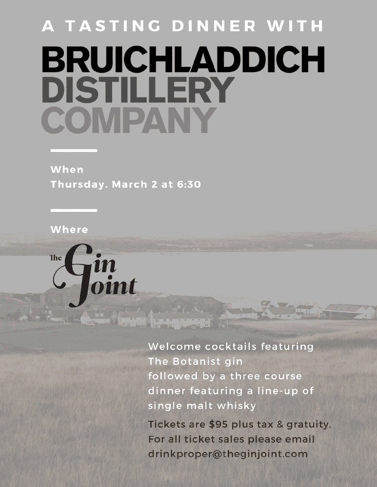 The Gin Joint to Host 3-Course Tasting Dinner with Bruichladdich Distillery