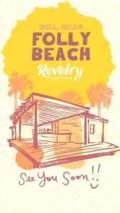 Soon enough that Summer heat will be in full swing and you’ll be wondering how to enjoy those same Revelry beers at the beach. Imagine being able to go for nice swim in the ocean, followed by a 2-minute walk down Folly Beach’s main drag where, tucked away down a hidden alley at 13B Center St, stands a bar stocked with ice-cold and sessionable small batch beers, seltzers, and maybe even a frozen drink with an umbrella. Let’s face it, the only thing better than a rooftop breeze is an ocean breeze.